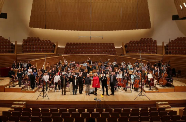 叶小纲、余隆与男高音布莱恩·杰德在录音现场