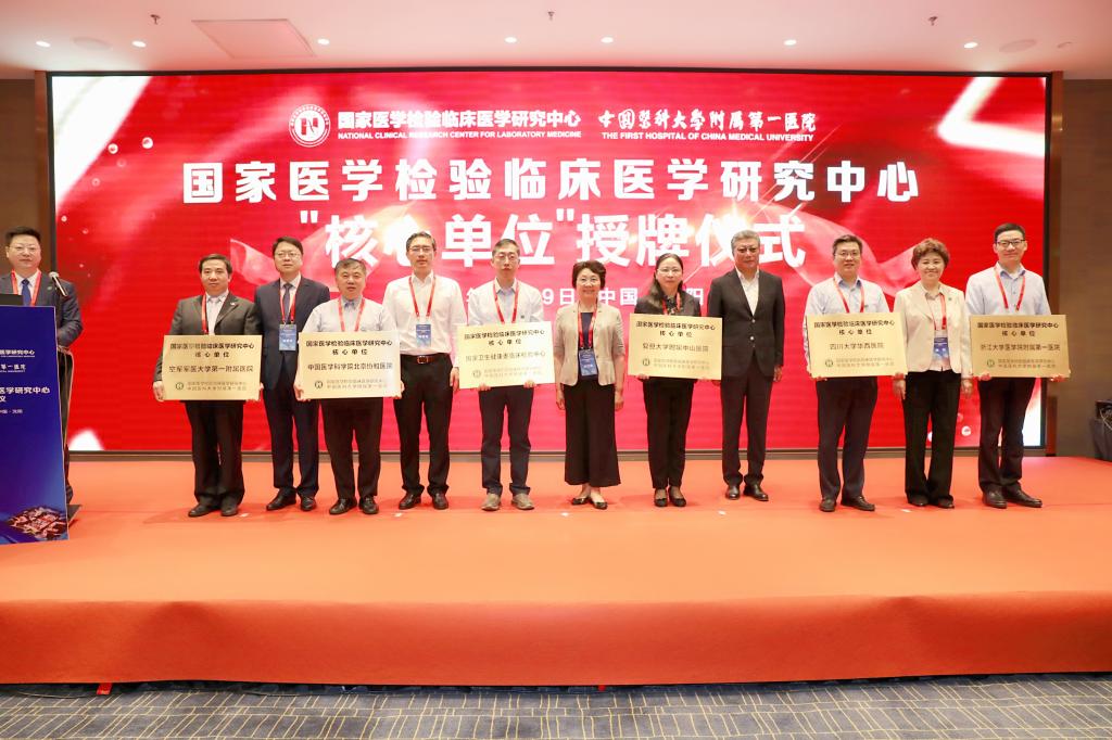 国家中心学术委员会主任王红阳院士发表了讲话。她指出国家中心作为医学检验科技创新体系的龙头,在各领域发挥积极的引领作用,助力健康中国战略目标实现。近年来,检验领域有了质的飞跃,建立了中国人群检验参考值国家标准,新技术不断涌现,为整体医疗水平提高起到了重要的支撑作用。尤其在新冠肺炎疫情爆发后,国家中心快速反应,充分利用协同创新网络,为疫情防控提供了重要的实验室依据,充分体现了国家临床医学研究中心的担当。她希望国家中心进一步深入开展检验临床和科技创新研究,加强人才培养和学术交流,推进更多原创成果的产出和推广应用,培养人才承担起引领我国检验未来发展的重要任务,将检验医学推向新的高度。随后,与会领导和院士为国家中心23家核心单位授牌。