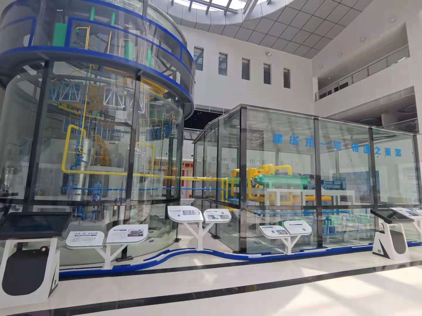 7月27日,师生们走进福清核电厂区,实地参观,了解了企业的创新核电管理模式,打造人才高地、技术高地、管理高地的建设成果。随后,参观了员工的培训室,了解了员工的培训机制以及学习过程,感受到了每一个岗位的重要性和必要性。接着,在讲解员的介绍下,参观了国之重器“华龙一号”的模型,了解了“华龙一号”的创新技术,它采取能动+非能动的安全系统,堆芯采用177组先进燃料组件,应用单堆布置方案,反应堆寿期可达60年。最后,师生们登上高台,远距离感受“华龙一号”的宏伟壮观。