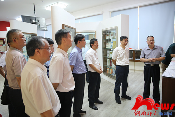徐维清一行先后实地考察了我校淡水鱼类发育生物学国家重点实验室、道德文化研究院展厅。每到一处,徐维清都认真听取了相关负责人情况汇报,详细询问了学科建设情况。在景德楼415室,外国语学院院长曾艳钰从拔尖人才培养、高素质师资队伍建设、科学研究与社会服务、传承创新优秀文化等方面汇报了我校“双一流”建设情况。