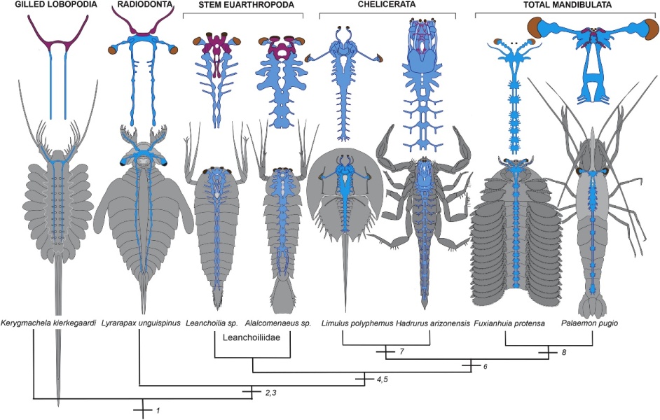 该研究揭示了寒武纪凯里生物群真节肢动物基干类群Leanchoiliidae 的脑部结构,不仅为古生物中心研究团队进行下一步早期节肢动物古行为学研究奠定了坚实的解剖学基础,更为探索节肢动物这一地球上分异度最高的动物类群的中枢神经系统演化过程提供了宝贵的化石实证,证实了真节肢动物三分脑原始类型,为寒武纪之后五亿年的地球节肢动物头部中枢神经结构奠定了基石。