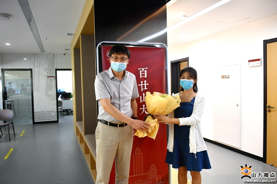 在欢迎背景墙前,新教工纷纷手拿祝福板和鲜花束进行合影,为自己在山大的起航作留念;在签名墙前,大家签好自己的名字,隆重写下迈入山大的第一笔,为自己和山大的明天喝彩,为山大双甲子生日祝福。