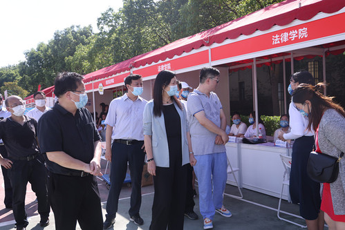 继续教育培训网首页8月31日上午,校党委书记夏小和,校党委副书记、校长刘晓红,校党委副书记刘刚一行来到学校新生报到现场,看望慰问2021级报到新生和一线工作人员,对来到上海政法学院学习的全体新生表示热烈欢迎,对连日来冒着高温坚守迎新工作一线的广大师生表示衷心感谢。