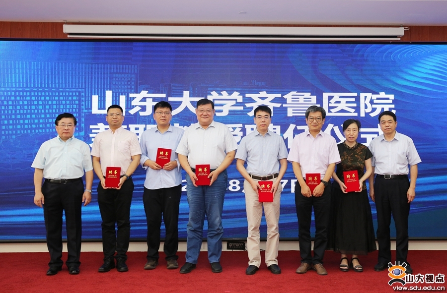 仪式上,齐鲁医学院副院长、齐鲁医院副院长纪春岩宣读了齐鲁医院首批校内高层次人才兼职聘任名单,介绍了各位专家的科研经历和学术成果,张运院士、陈玉国为各位专家颁发聘书。
