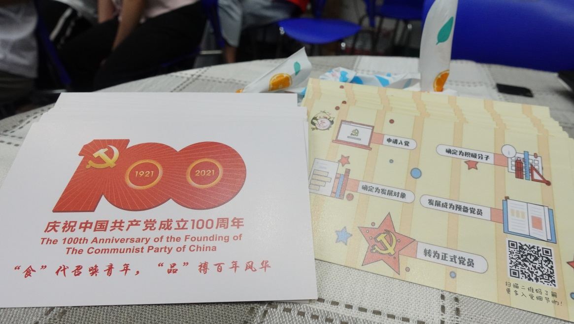 “党员服务站”是迎新的重要阵地,不仅有4个本科生党支部百余名学生党员担任迎新志愿者,给予新生热心接待、悉心引导,更有一摞印有入党流程图和“庆祝中国共产党成立100周年”标识的“能量卡”送给每名食品萌新,召唤新生积极向党组织靠拢,找到政治思想上的方向和归属感,引导新生自觉将人生规划、专业学习与党的百年伟业结合起来。“‘食’代召唤青年,‘品’搏百年风华”,党员服务岗以实际行动带领广大青年坚定理想信念,积极践行社会主义核心价值观。“大学生党员是走在时代前面的奋进者,有信念、有梦想、有奋斗、有奉献的人生,才是有意义的人生。进大学后,我也要积极向党组织靠拢,争取早日加入中国共产党。”一名新生拿着卡片激动地说道。
