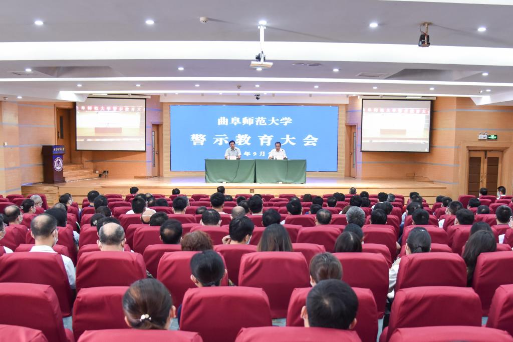 继续教育培训网首页9月9日,曲阜师范大学召开警示教育大会,结合马善军案件进行以案说法、以案示警,推进学校党风廉政建设和反腐败工作。学校党委书记戚万学出席并讲话,党委副书记、校长张洪海主持会议。全校科级以上干部参加大会。