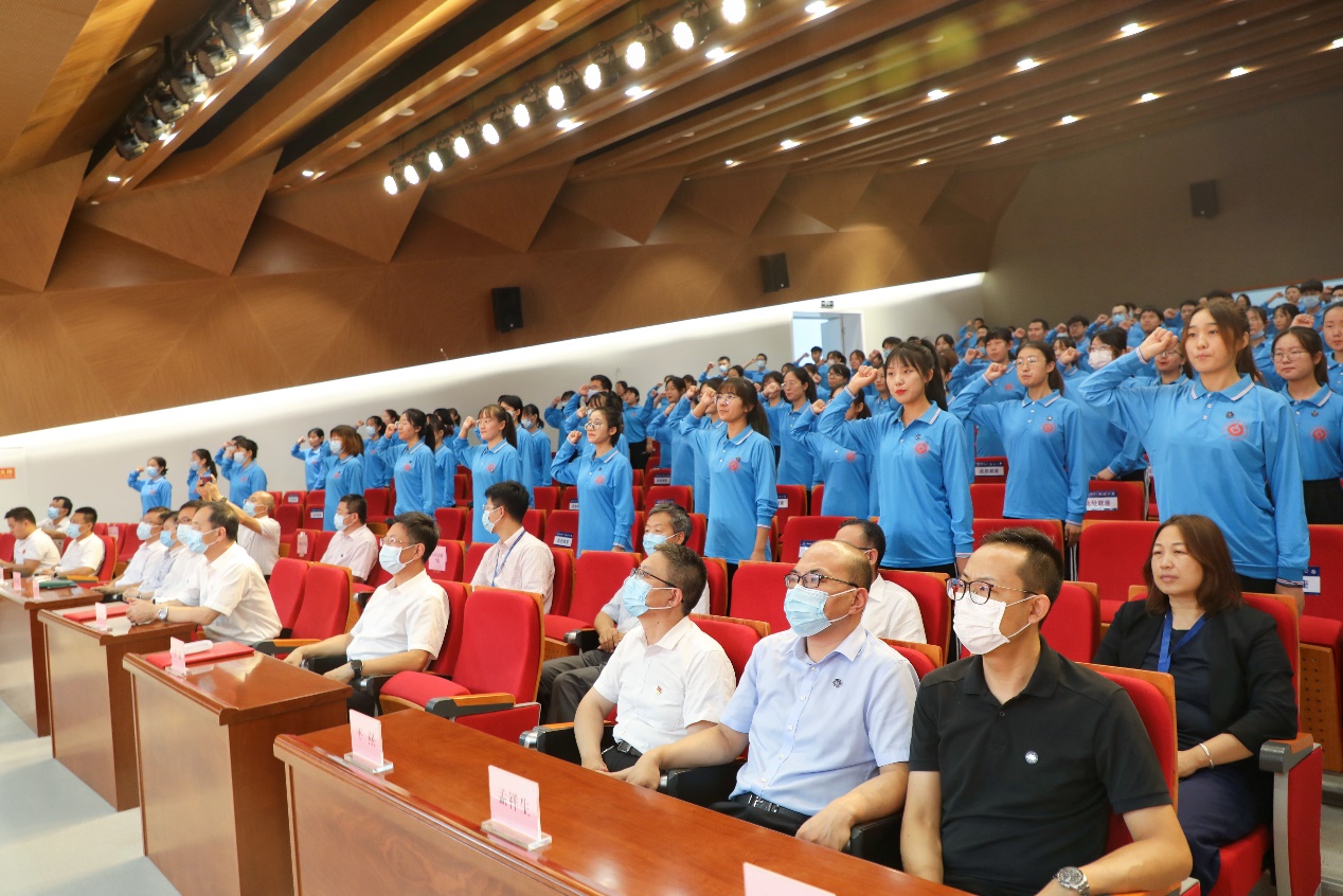 14:00,伴随着雄壮的国歌,大会正式拉开帷幕。全体与会人员肃然而立,目光坚定,充满希望,高唱国歌。