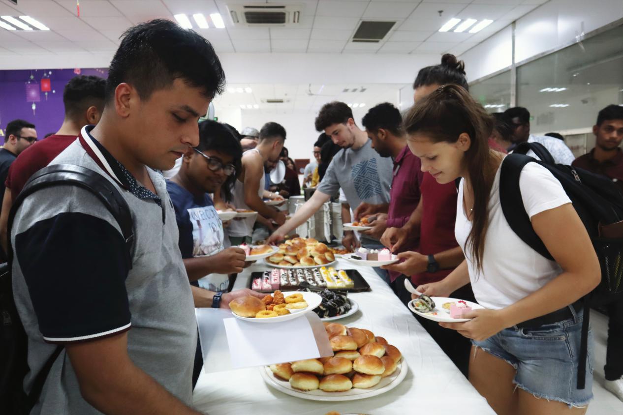 此次活动采取欢迎晚宴的形式,配以现场游戏互动,让来自世界各国的留学生朋友欢聚一堂。留学生们一边品尝着美食,感受着南航独有的校园文化,一边交流着初来中国的所见所闻,现场气氛轻松而又热烈。