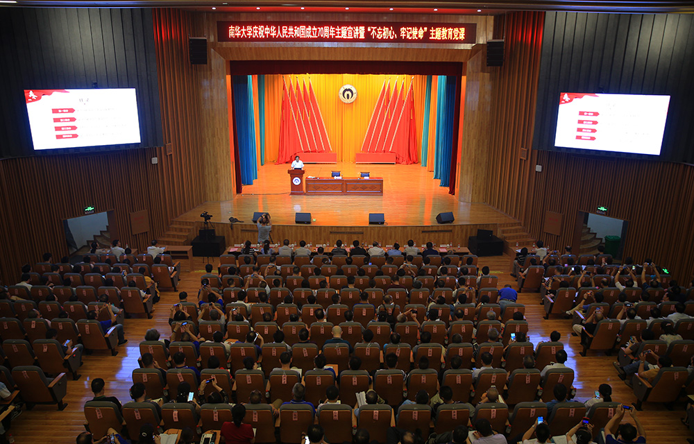 继续教育培训网首页9月17日下午,学校举行庆祝中华人民共和国成立70周年主题宣讲暨“不忘初心、牢记使命”主题教育党课,校党委书记高山作宣讲报告。校党委副书记阳小华主持报告会。省委“不忘初心、牢记使命”主题教育巡回指导第十七组成员陈民权、罗满文,全体在校校领导、副处以上干部、党支部书记、教师代表及学生代表近800人参加报告会。