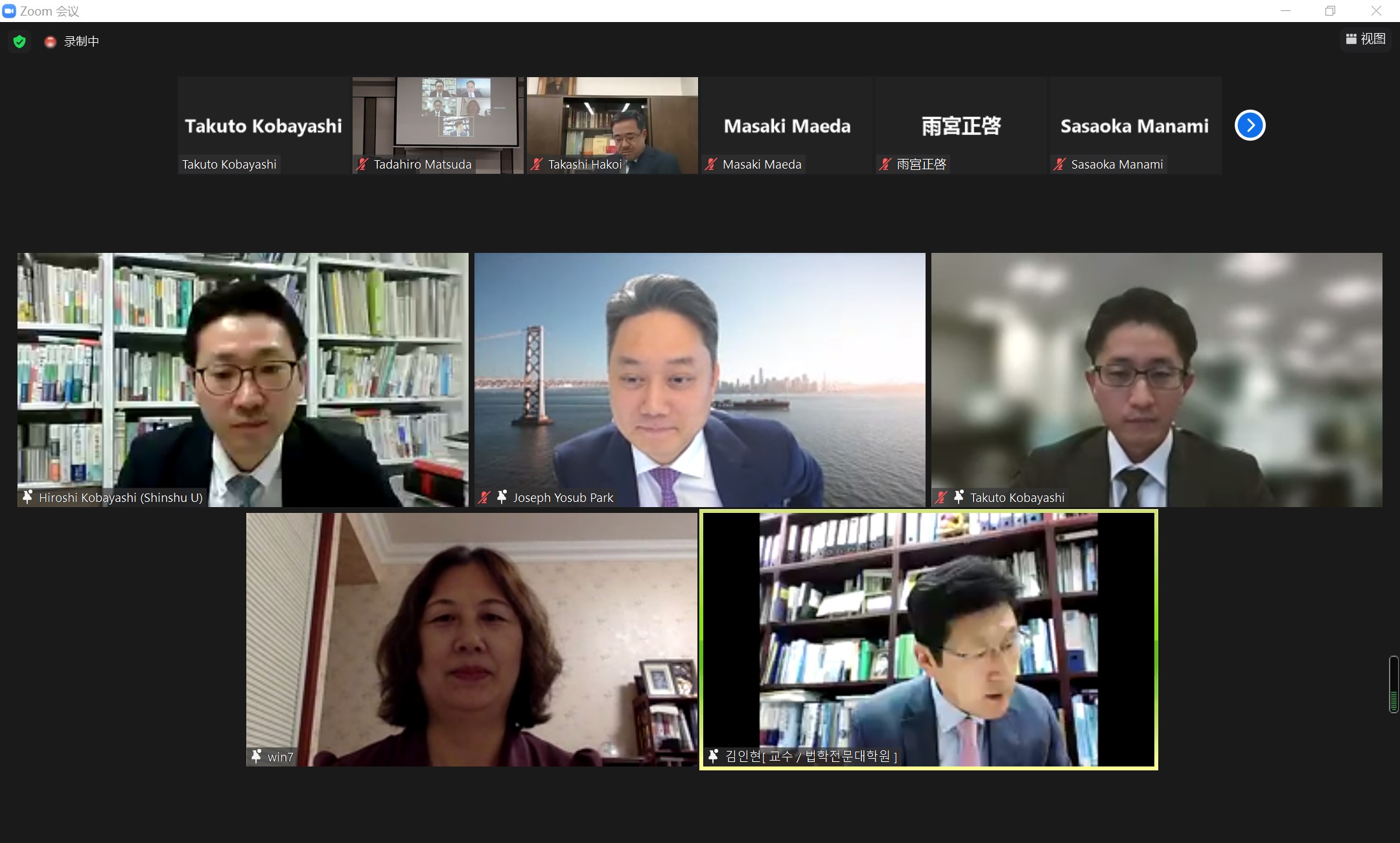 初北平教授以及日本早稻田大学法学学术院长箱井崇史教授应邀在论坛闭幕式上做总结发言。初北平教授回顾了我校、早稻田大学和高丽大学作为东亚海法论坛的三个创始成员,在过去14年中致力于东亚地区海商法研究与交流的共同经历以及由此积累的深厚友谊,特别感谢了鹿儿岛大学和早稻田大学在疫情的影响下为继续举办论坛做出的努力,简要介绍了中国海商法修订工作的进展,并诚挚地邀请与会人员参加2022年由中方承办的第14届东亚海法论坛。法学院王欣、王晓凌、于诗卉、刘佳溢老师,以及博士研究生Youa Narou(多哥)、李清瑜,硕士研究生唐艺洁、林孟懋、邢傲男等同学也参加了本届论坛。