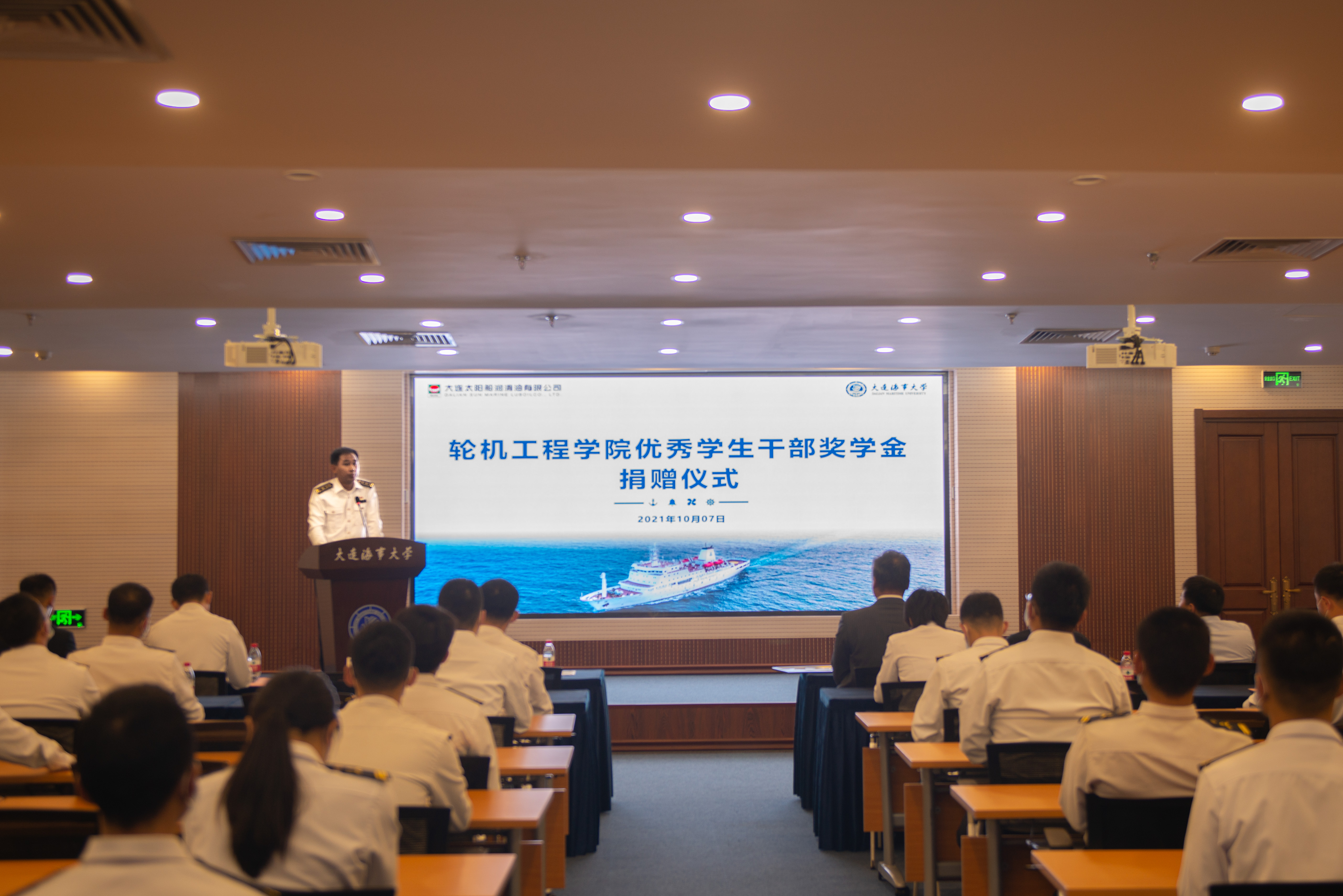 大连太阳船润滑油有限公司成立于 1994 年,是专业从事船用润滑油生产、销售、服务于一体的公司。历经近三十年的发展,建立起遍及国内外30余个港口的供油服务网络,先后为5000余艘船舶提供长期油品供应及跟踪化验等售后服务。公司于2021年起在轮机工程学院设立“优秀学生干部奖学金”,每年捐资6万元,连续五年,用于奖励轮机工程学院品学兼优的优秀学生干部。