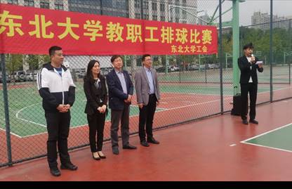 9月23日,东北大学教职工排球赛开幕式举行。校工会主席沙海影、体育部党总支书记王明波、校工会副主席张琦、体育部副主任孙玉宁出席开幕式。张琦致开幕词,裁判员代表、运动员代表宣誓,沙海影宣布比赛正式开始。