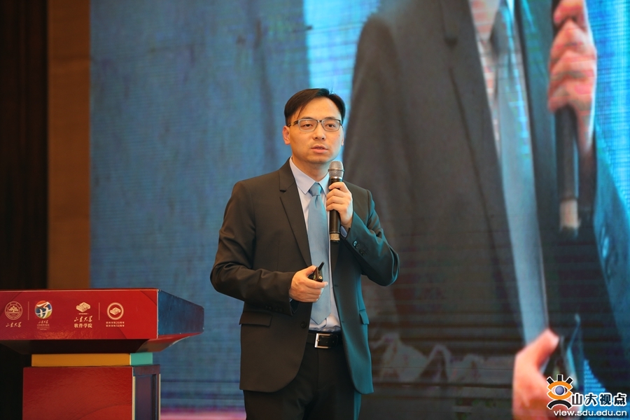 软件学院院长崔立真回顾了软件学科、软件学院的发展历程,并从学院师资队伍力量、科学研究成果、人才培养特色、合作发展成效几个方面,系统介绍了学院发展情况。他表示,软件学院将继续传承山大基因,坚守立德树人初心,向着建设国际一流学科和学院的目标阔步前进。