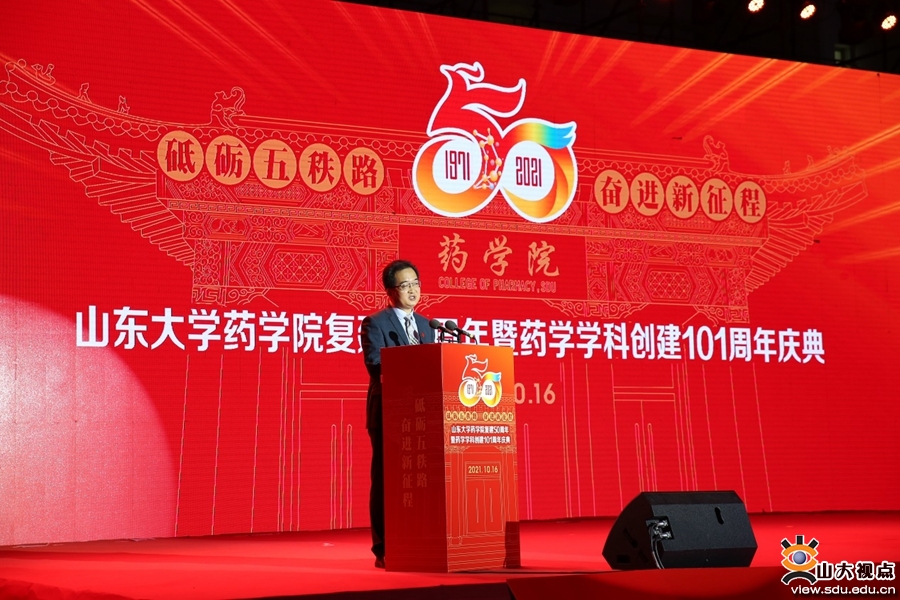 继续教育培训网首页博施济众五十载,桃李芬芳满天下。10月16日,药学院在趵突泉校区体育馆举行复建50周年暨药学学科创建101周年庆典活动。国家药监局局长邵明立,中国药科大学副校长姚文兵,中国科学院上海药物研究所副所长赵强,齐鲁医学院党工委书记刘洪渭,国际欧亚科学院院士、山东大学国家糖工程中心主任凌沛学等出席庆典。山东大学党委副书记王君松,欧亚科学院院士、中国医学科学院杜冠华教授,北京大学药学院院长周德敏,齐鲁制药集团副总裁张明会出席庆典并致辞。中国科学院上海药物研究所陈凯先院士,南澳大学、西安交通大学药学院、西南大学药学院、兰州大学药学院、暨南大学药学院等发来贺信、贺礼,表达了对药学院复建50周年院庆的热烈祝贺和对未来发展的美好祝愿。