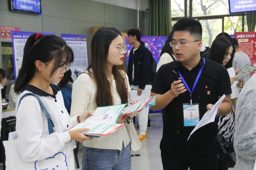 副校长彭凤莲、芜湖市人力资源和社会保障局局长吴秀丽等深入招聘现场与用人单位、毕业生交谈,了解对我校招聘工作的满意度、意见和建议。吴秀丽还就芜湖市就业创业政策,为毕业生解疑答惑,并鼓励毕业生把握机会、留芜发展。