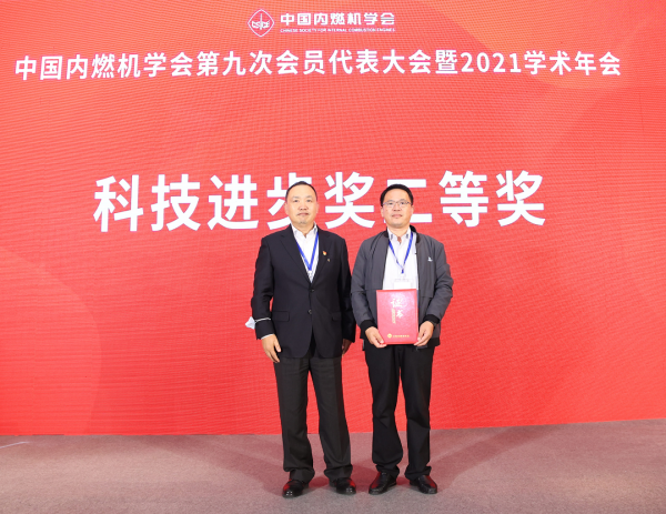 李继凯为中国内燃机学会2021年度“科技进步奖”二等奖获奖者颁奖