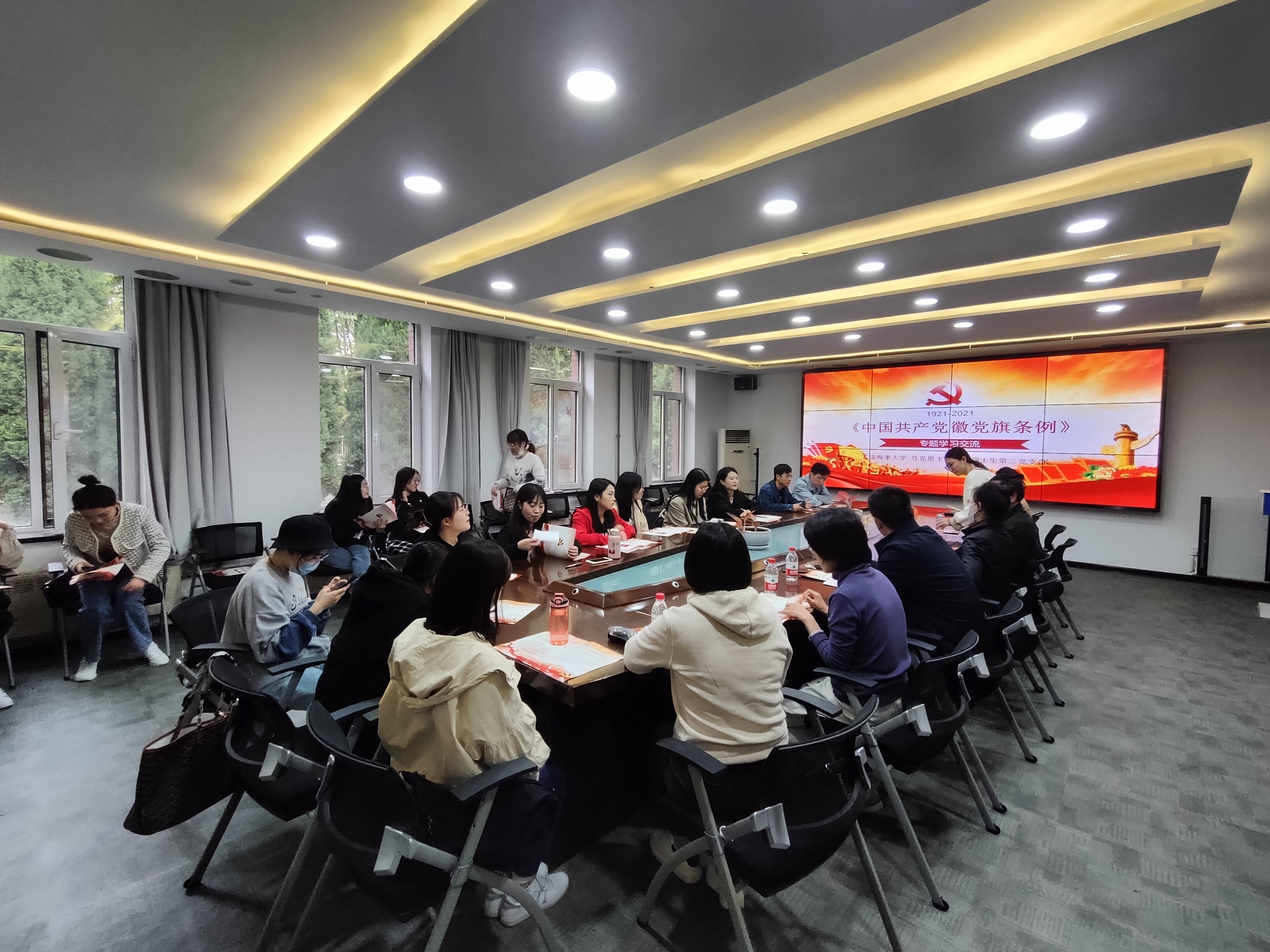 10月15日下午,马克思主义学院硕士研究生第二党支部、离退休工作处在职党支部召开《中国共产党党旗党徽条例》(以下简称《条例》)专题学习交流会。会议由马克思主义学院硕士研究生第二党支部书记王靖主持。