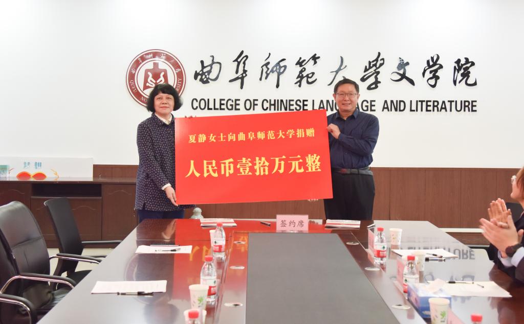 继续教育培训网首页10月25日上午,文学院院长夏静教授向我校孔子教育基金会捐款10万元,用于支持和促进我校教育事业发展。学校党委常委、副校长李兆祥,活动捐资人、文学院院长夏静教授出席捐赠仪式。国内合作处、研究生处、文学院等单位负责人及师生代表等参加了活动。活动由文学院党委书记左兴才主持。