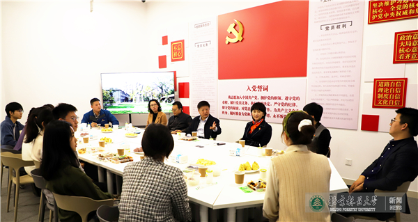 交流过程中学生代表踊跃发言。风园科硕214班学生程哲分享了王洪元书记作为自己本科班级的班主任给园林173班带来的方向感和凝聚力,他表示这个“不一样的班级”让同学们在各自发展中受益匪浅;王洪元书记联系的硕马2019学生党支部副书记秦佳明分享了自己所在宿舍同学们相互督促、相互学习,共同进步的体会与收获;退役大学生士兵代表尹思涵讲述了她作为特战队员在驻港部队服役期间的所见所思所悟;2021级新生骨干训练营代表张诗语表示进入北林就像是来到温馨的家,班级学习氛围浓厚,过的十分充实;少数民族研究生代表古丽米热·普拉提分享了自己两年保研辅导员的经历和对少数民族学生学习发展的思考;2022年北京冬奥会志愿者代表涂嘉晋、李晖表示将牢记学校嘱托,用热忱传递温暖,以饱满的精神状态为北京冬奥会贡献北林力量;话剧《梁希》学生负责人、校艺术团话剧团团长覃锦旋表示将做好梁希精神的传播者和话剧团“聚、帮、传”模式的推广者。