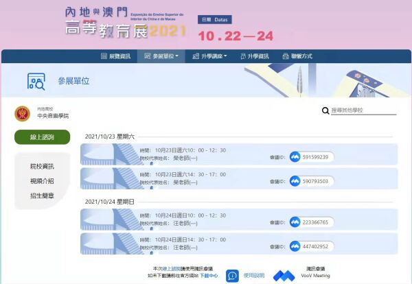 除此之外,教务处在教育展举办之前就提前准备并在专用平台公布了各项招生宣传材料,包括我校基本情况、2022年澳门保送招生简章等内容,并安排招生办公室两名老师于23、24两日全天线上值守,为前来咨询的学生解答疑惑。