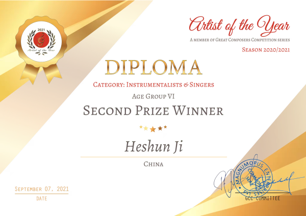 主办方:英国伦敦杰作企业,旗下赛事包含“世纪杰出作曲家”系列音乐比赛、“世界希望之星”国际音乐比赛等。本次比赛因为新冠疫情改为网络比赛。评审团来自不同国家。