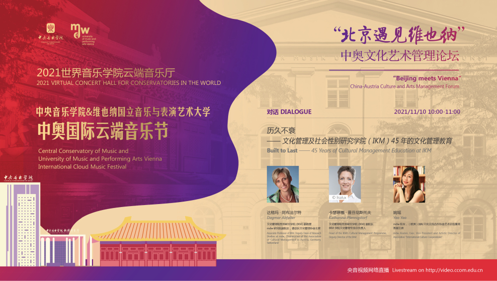 自1971年5月28日中奥建交以来,两国在政治、经济,特别是文化艺术领域的互惠交流日益频繁。作为东西方的文化大国,两国在文化艺术领域的交流合作日益深入,即使在疫情下也没有受到阻碍和影响。疫情发生的两年间,中央音乐学院与维也纳国立音乐与表演艺术大学的领导和教师们时常互发信件问候鼓励,积极互动,共同成功举办了一系列线上学术交流活动,两校多年建立的友谊也更加深厚!
