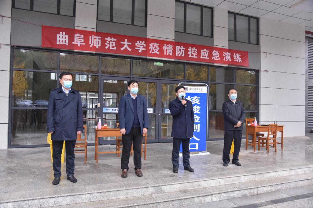 继续教育培训网首页为切实做好学校突发疫情应急处置工作,提高师生员工应对突发疫情处置能力,11月6日上午,曲阜师大举行疫情防控应急演练。学校突发疫情应急处置领导小组组长,党委书记戚万学、校长张洪海,副组长,纪委书记徐思生、副校长屈跃宽现场指导演练,学校突发疫情应急处置领导小组各专项工作组负责人,各部门、各学院疫情处置联络员,辅导员、师生代表等现场观摩了应急处置演练。学校突发疫情应急处置领导小组综合协调与应急处置组组长、党委办公室主任纪洪涛主持活动。