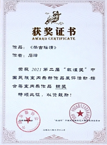铜奖《槃古瑶情》获奖证书(石峰)