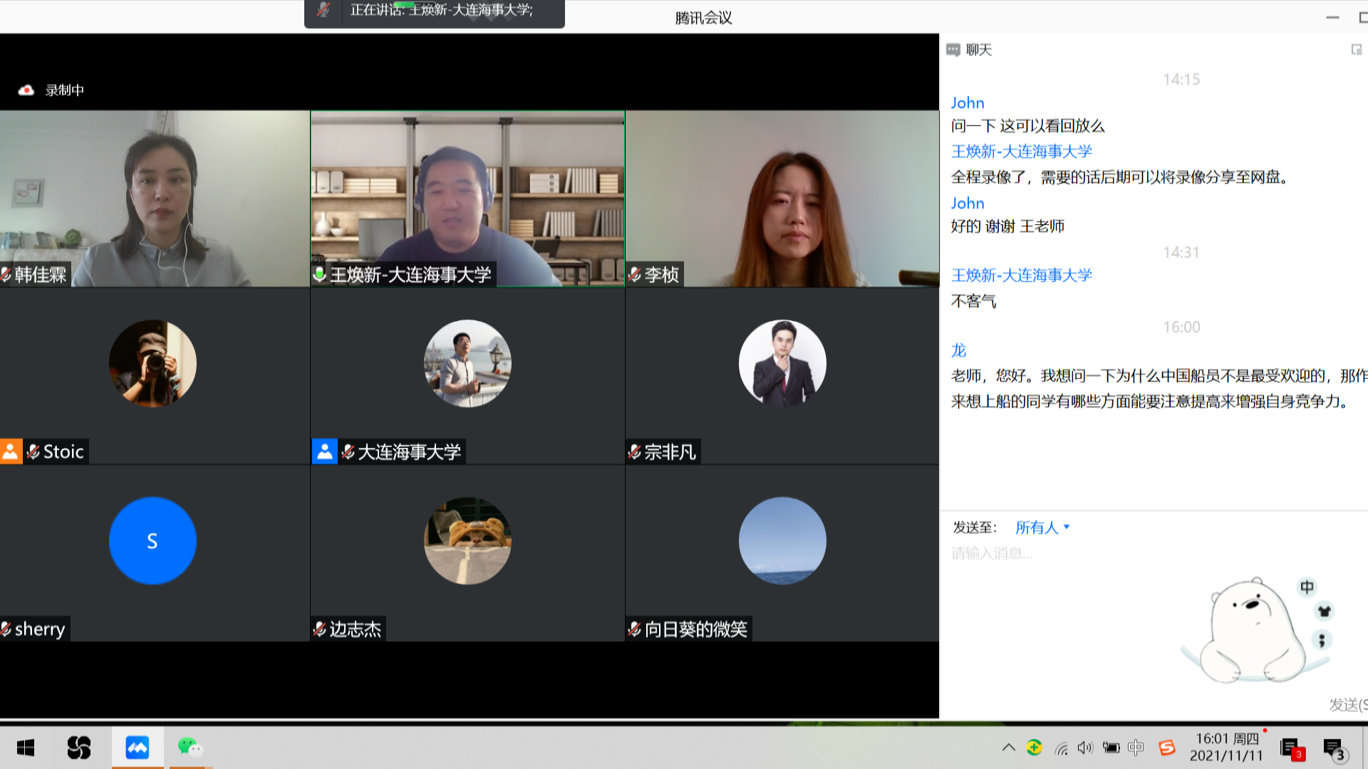 在互动环节,航海学院、轮机工程学院的部分师生和信德海事等单位的嘉宾与主讲老师就感兴趣的问题进行了深入交流互动,整个活动氛围活跃,达到了预期效果。