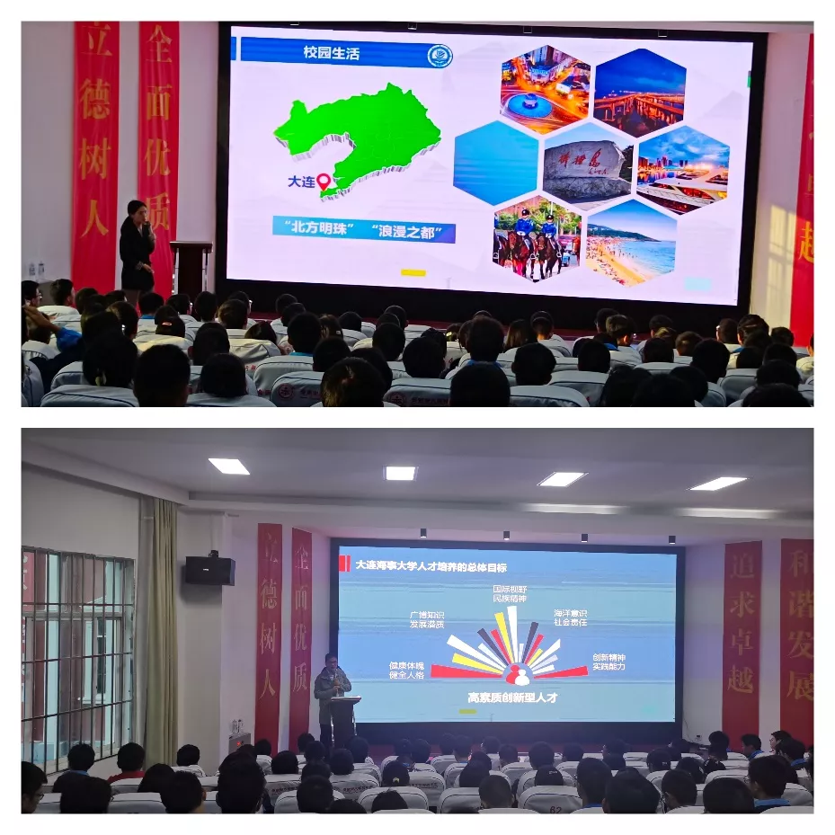 继续教育培训网首页为做好学校招生宣传工作,帮助高中学生准确了解大连海事大学的办学实力、人才培养模式和校园文化,吸引更多优秀学子报考大连海事大学,近日,由大连海事大学航运与经济管理学院教师王殿武、法学院指导员刘贺组成的招生宣传小组,赴云南昆明长水教育集团衡水实验中学西山校区和本部开展招生宣传活动。