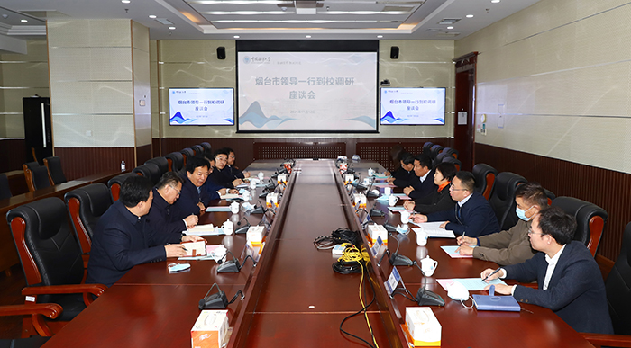 本站讯 11月12日下午,烟台市委副书记、市长郑德雁一行来中国海洋大学调研,就科研成果转化等事宜进行了座谈交流,学校党委常务副书记张静,党委常委、总会计师王剑敏出席座谈。