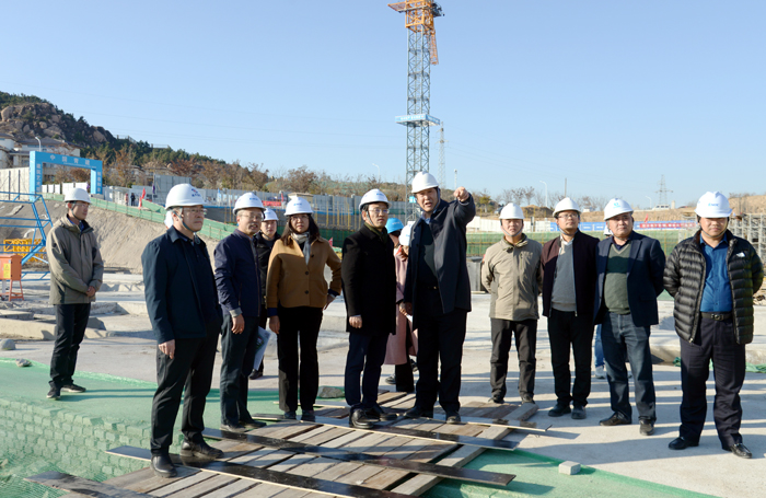 会谈后,田辉一行赴西海岸校区调研校区建设情况。田辉看望慰问了西海岸校区建设指挥部的一线工作人员,现场考察了学习综合体、教工公寓等建设项目,实地调研了里岛、融海公馆人才公寓有关情况,了解建设进展及存在的问题。