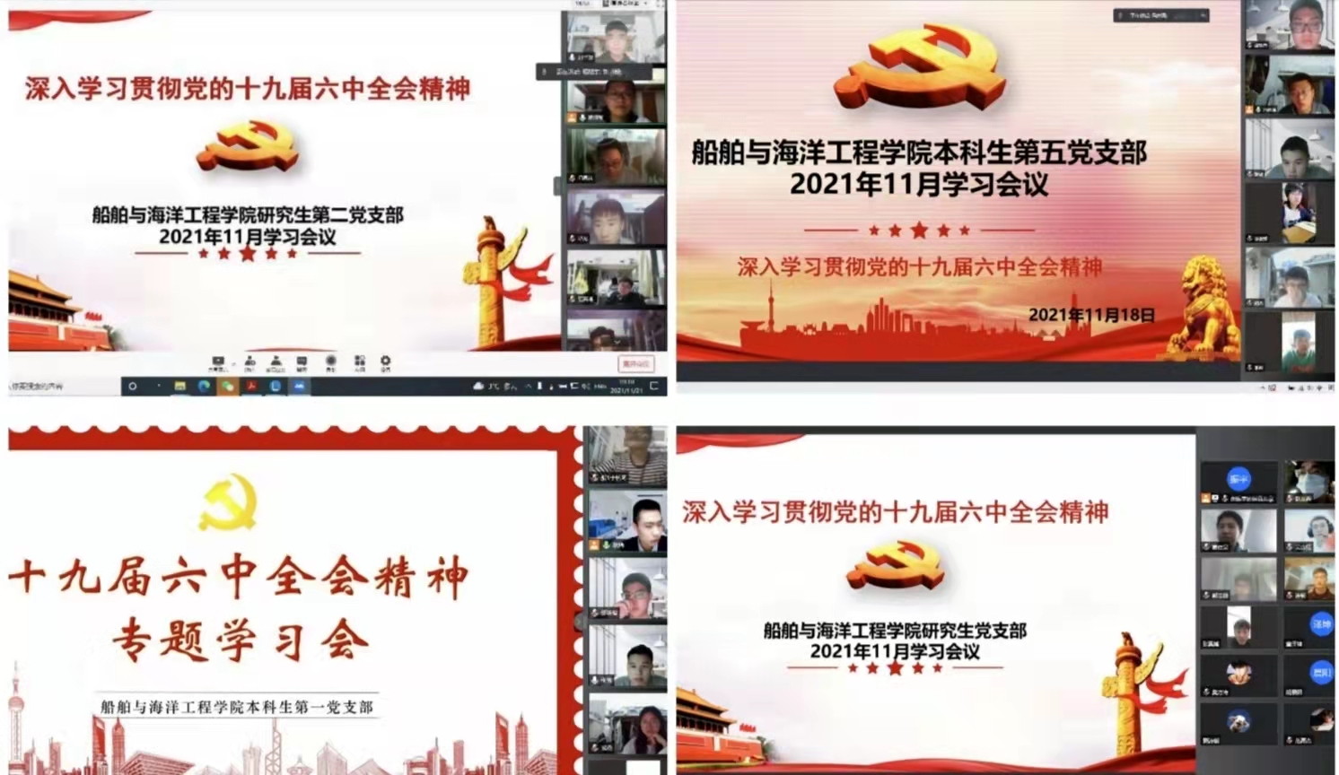 继续教育培训网首页11月中旬,船舶与海洋工程学院各党支部召开线上会议,专题学习中国共产党第十九届中央委员会第六次全体会议精神。