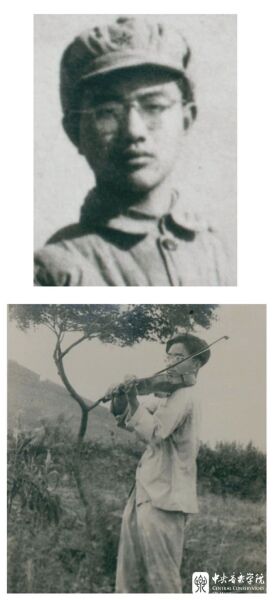 左,1956年刚刚考入中央音乐学院的钟子林在学校门前留影。