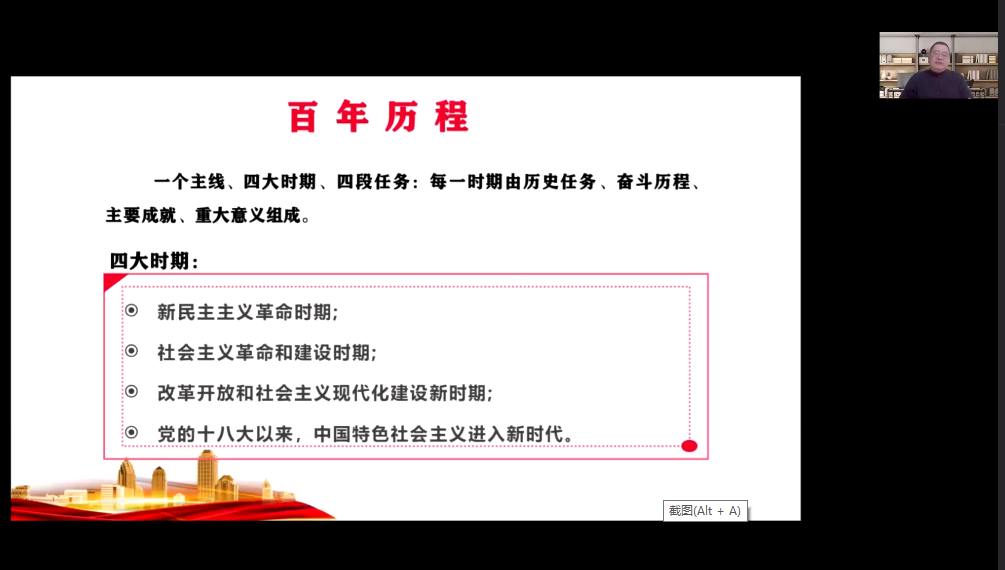 活动邀请大连海事大学马克思主义学院院长吴云志教授做《党的百年奋斗重大成就和历史经验——党的十九届六中全会精神解读》专题讲座。他从《决议》的时代背景、百年奋斗的重大成就、三次飞跃与“两个确立”、历史意义与历史经验等四个方面做了详细的讲解,让与会党员和同学们深刻理解了党百年奋斗的历史逻辑、理论逻辑和实践逻辑并提振了精神动力。