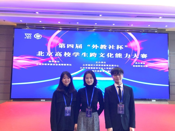 大赛由北京高校大学英语教育发展中心、北京市高等教育学会大学英语研究会、上海外语教育出版社主办。该项赛事是一项团体赛,包括中国人民大学、北京语言大学、对外经贸大学、国际关系学院等在内的36所在京高校派出代表队参赛,其中不乏专业外语高校或综合大学外语专业学生。大赛通过多层选拔环节和多种测评方式多维度全面考察参赛选手的语言、知识面、跨文化理论思维及临场表达、团队合作能力,富于挑战性。我校选拔出的19级音乐教育学院学生陆心澄、许自成、19级音乐治疗专业学生段秋蕾组成的代表队在复赛中惊艳亮相,积极参与由武越、刘佳月两位老师合作编写的原创英语短话剧排演,以“The Question of Harmony”为题,探讨中国文化的对外阐释,生动再现了音乐家在排练、演出等环境中所遇到的跨文化冲突情景,具有高度的学术性与观赏性。短话剧脚本立意高远、探讨话题新颖深刻,三位同学英语表达流畅自然、表演到位,由我校拍摄团队制作的参赛视频制作精良,我校代表队在复赛中位列所有36个参赛队的第一名,昂首闯入决赛。