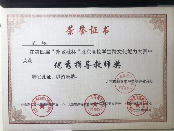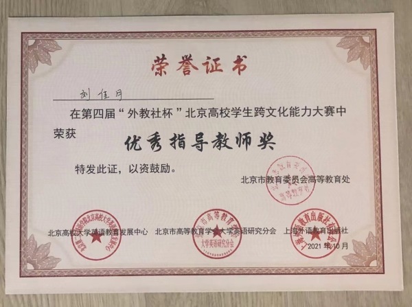 决赛共分为快问快答、跨文化情景案例分析、讲述中国文化三个部分,其中既有“孤军奋战”型挑战,又有合作型问答环节。我校三位参赛选手在跨文化情景案例分析中表现突出,他(她)们虽并无参加此类比赛的经验,但思维清晰,逻辑缜密,既相互配合又能各自独当一面,发扬了优秀的团队合作精神和过硬的跨文化专业素养,最终在决赛中夺得难能可贵的二等奖,武越、刘佳月两位老师荣获“优秀指导教师奖”。