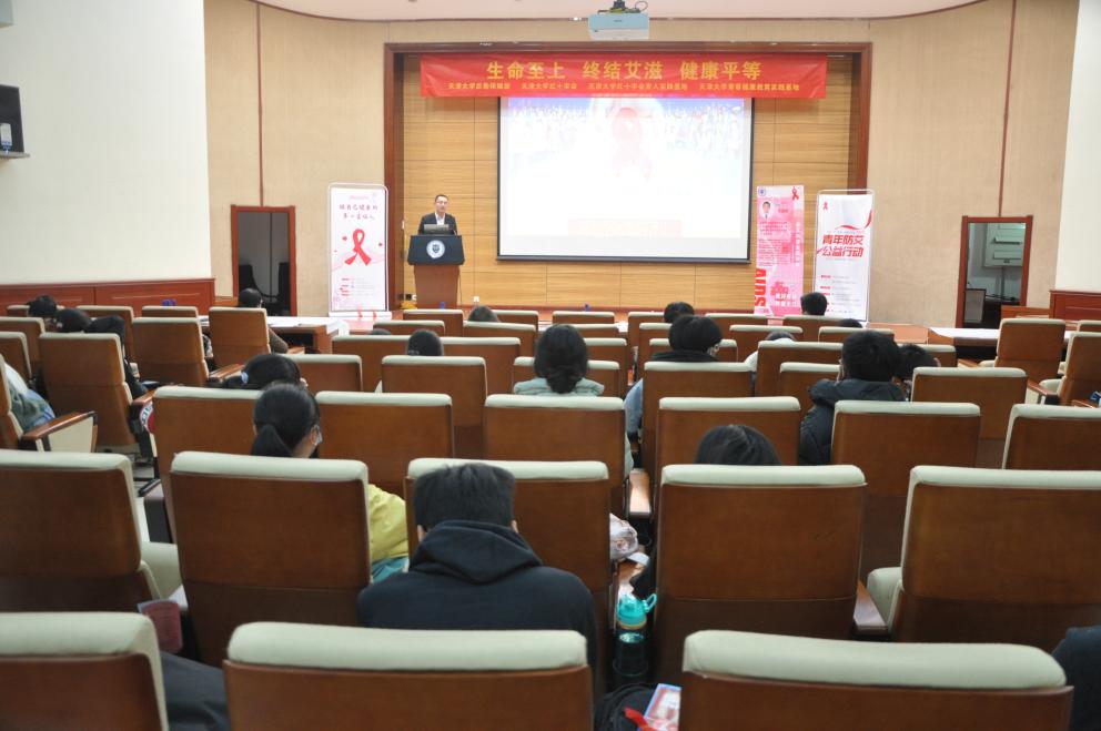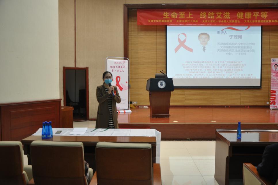 继续教育培训网首页为进一步推动艾滋病防治工作,增强青年防艾意识,促进青年身心健康发展,12月1日,正值第三十四个“世界艾滋病日”,由中国青年报、中国性病艾滋病防治协会主办,天津大学后勤保障部、天津大学红十字会、天津大学青春健康教育基地承办的“美好青春 有爱无艾”为主题的世界艾滋病日宣传讲座在卫津路校区科图二层报告厅顺利开展。讲座由天津大学计划生育办公室主任郭美老师主持,天津大学后勤保障部党委副书记韩婧极与在座师生一起聆听了讲座。