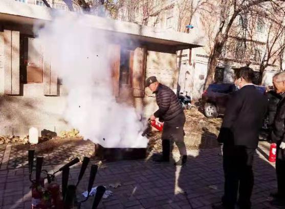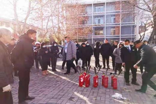 消防工作人员在现场讲解防火注意事项、初期火灾扑救方法,以及发生火灾时如何引导学生逃生、自救等安全知识,并演示灭火器的使用方法,组织人员现场进行灭火器的实操,提高物业人员处理突发险情的能力。