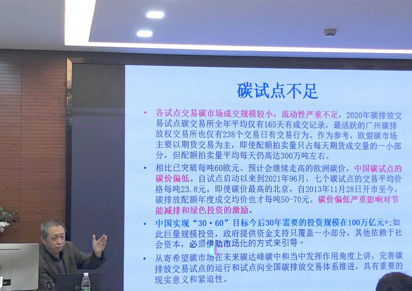 张教授介绍了碳达峰和碳中和概念产生的国际背景,以及一系列国际峰会和国际气候变化谈判对中国的影响。从产业转型的角度分析了碳中和政策对控煤和影响,总结了过去在试水碳排放权交易中汲取的经验教训和不足之处。中国实现“30•60”的双碳目标是任重道远的。巨量规模的投资与治理, 不仅是依靠政府提供的资金支持,还依赖于社会资本,必须借助市场化的方式来引导。完善碳排放交易试点的运行和试点向全国碳排放交易体系推进,具有重要的现实意义和紧迫性。最后,张教授深入探讨了欧盟碳边境调节机制及其对中国的影响和启发。