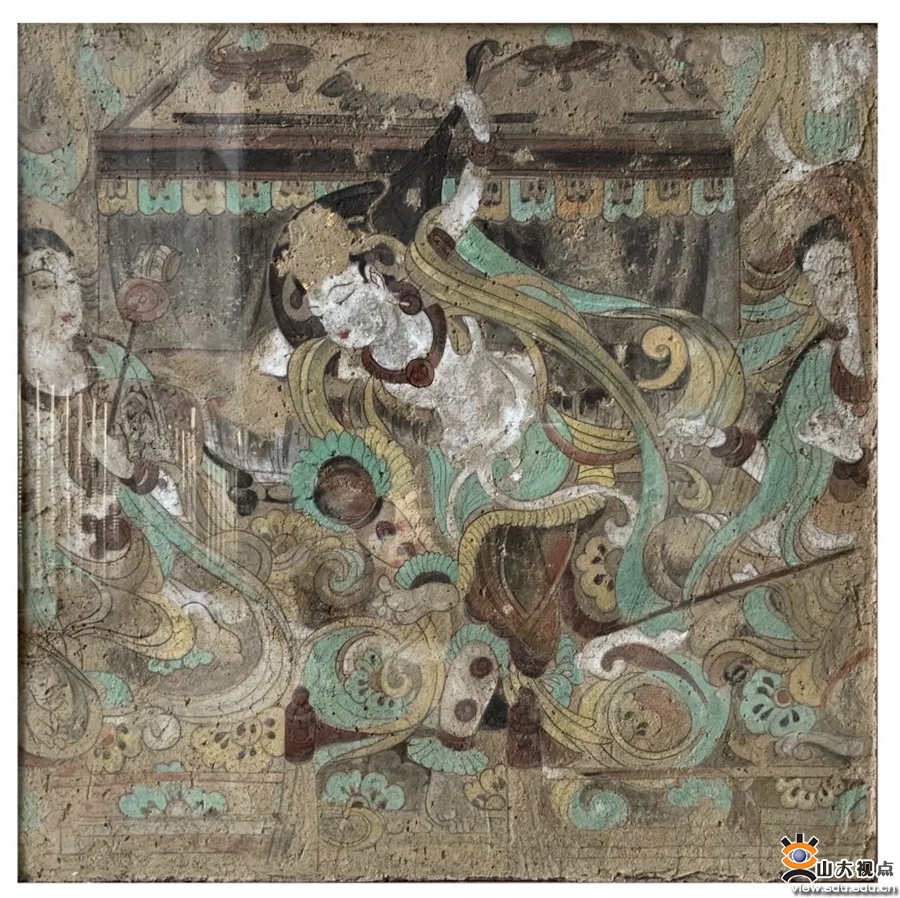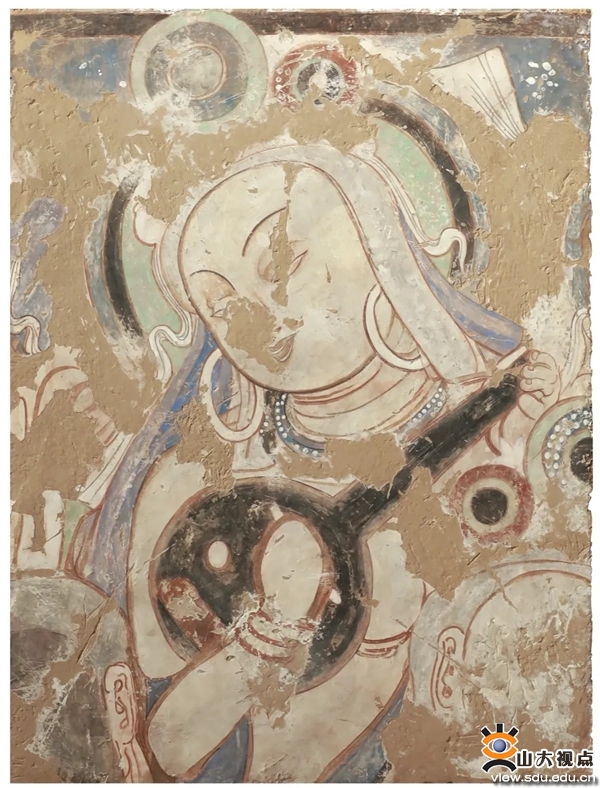 本次壁画展的题材来自敦煌、龟兹壁画中的乐舞图象。在莫高窟现存的壁画窟中,大约有一半保存了相当数量的乐舞内容,将古代多民族音乐融合的态势直观地展示出来;而龟兹自古就有“管弦伎乐,特善诸国”的乐舞传统,克孜尔70多个壁画窟中,有50余窟绘有乐舞形象,计有乐器20种270余件,舞蹈画面40余幅,伎乐70余身,足见当年丝路乐舞艺术之繁盛。
