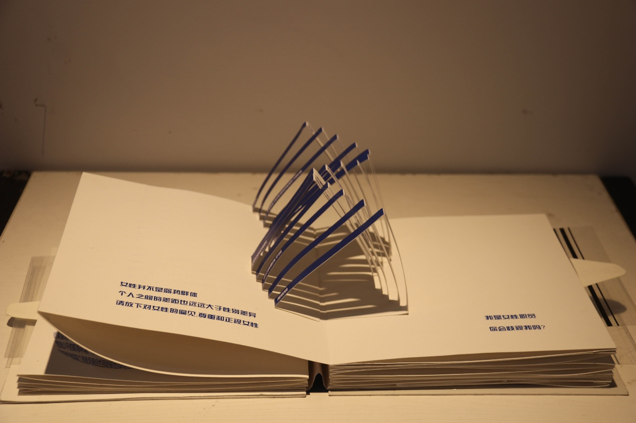 刘栩畅同学的作品《瓷》利用书籍载体传承优秀传统文化,通过把书籍的外形设计制作成瓷器的形态,达到装饰的效果,与书本的内容相呼应。刘栩畅同学说道:“我们在前期调研,资料搜集梳理以及书籍设计过程中,会真正的深入到传统的文化精神中去,对提升我们的文化自信和文化认知起到重要作用。”