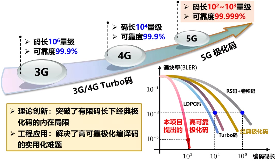 图:3G-5G移动通信中的编码码长与可靠性对比