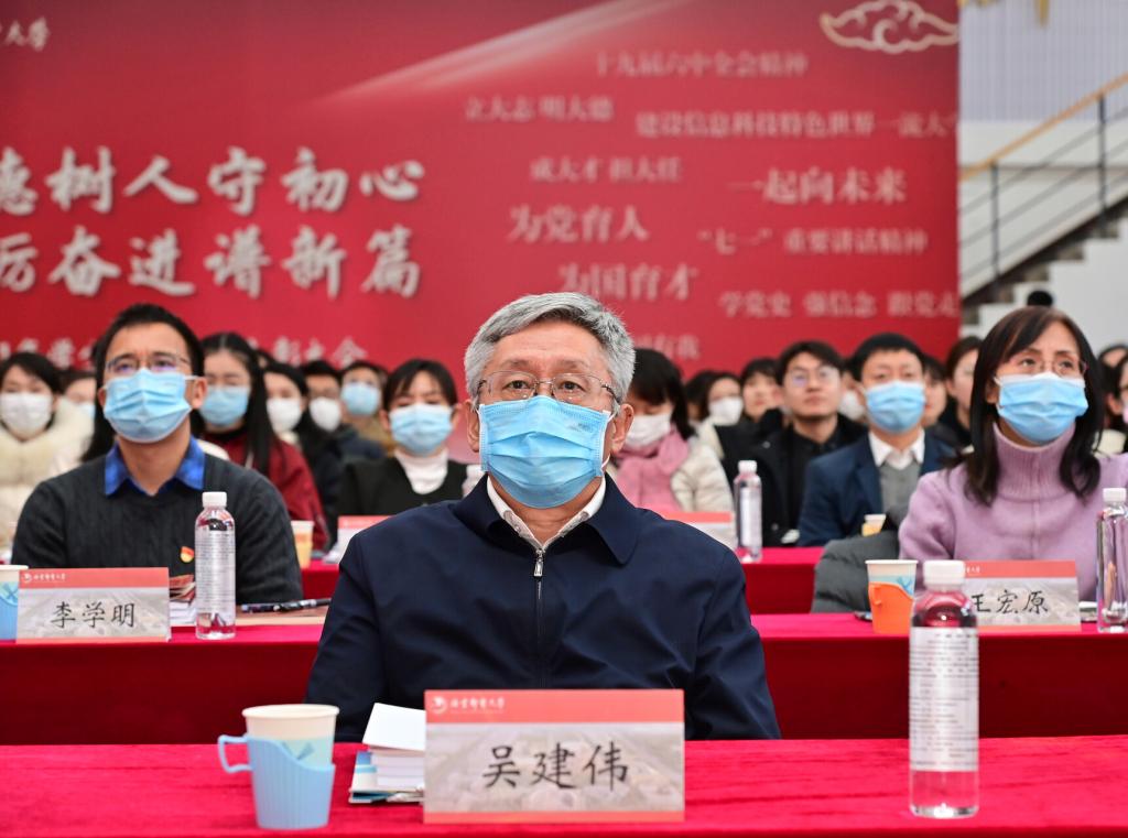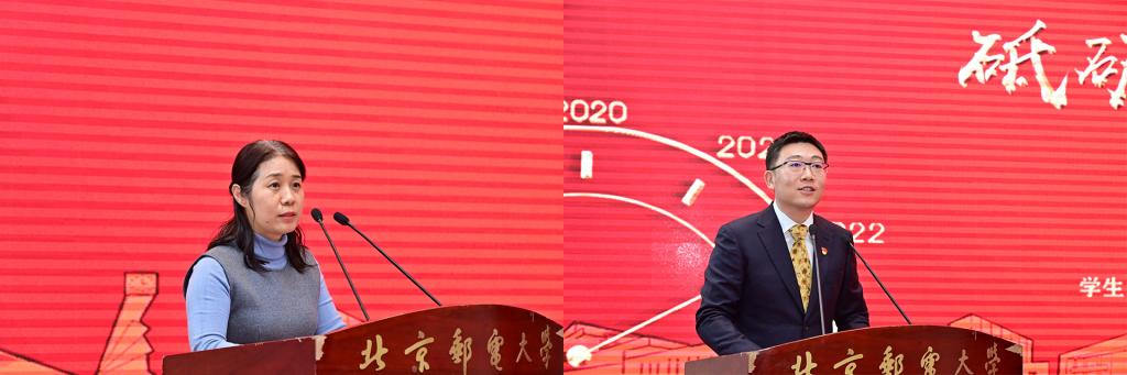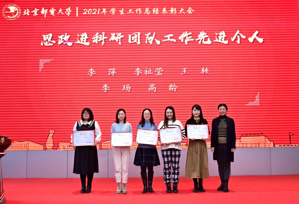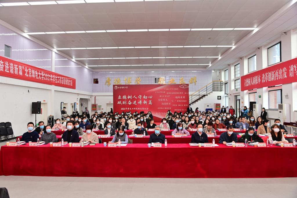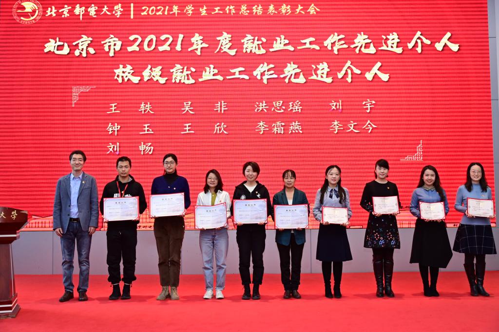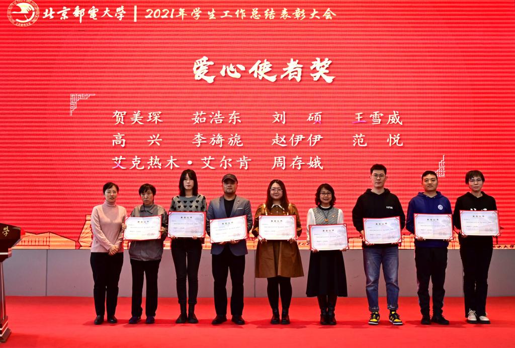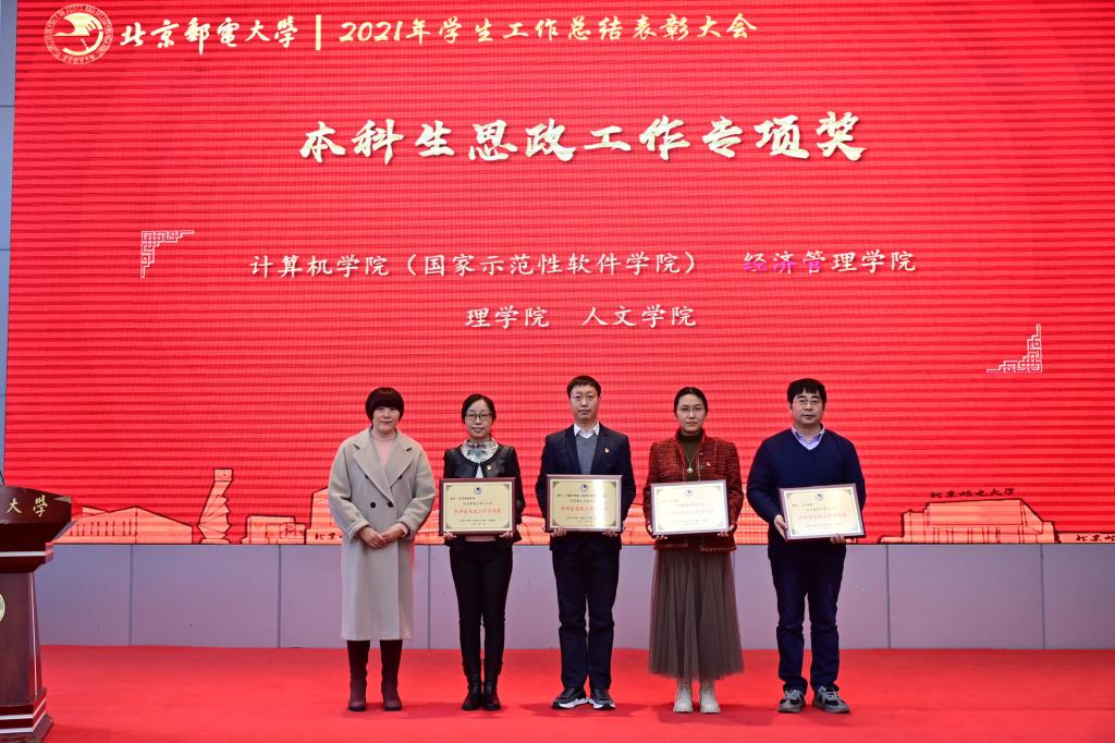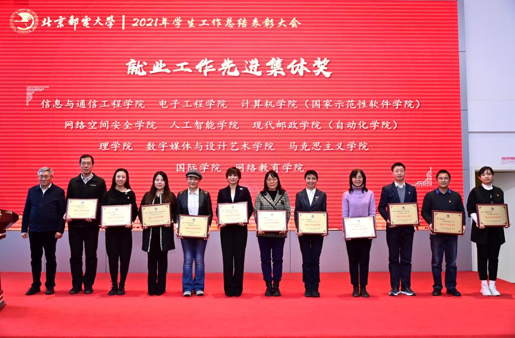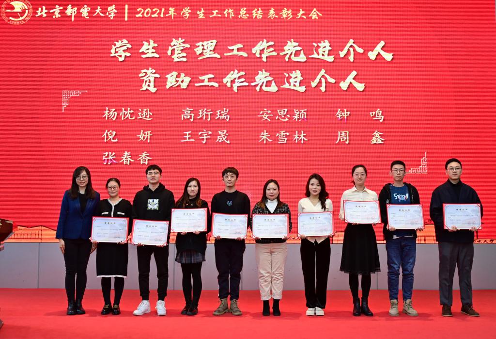 全体参会人员共同观看了《北京邮电大学2021年学生工作纪实》,回顾过去一年在各项学生工作中取得的丰硕成果。研究生工作部部长、研究生院常务副院长冯志勇宣读表彰决定,授予计算机学院(国家示范性软件学院)等4个学院本科生思政工作专项奖,电子工程学院等4个学院研究生思政工作专项奖,理学院等3个学院基层组织建设专项奖,信息与通信工程学院等11个学院就业工作先进集体,网络空间安全学院等3个学院心理素质教育专项奖,马克思主义学院学风建设专项奖,现代邮政学院(自动化学院)等2个学院资助工作专项奖,电子工程学院学生日常管理与安全教育专项奖,人工智能学院等3个学院征兵工作专项奖,国际学院等3个学院社会实践专项奖,经济管理学院等3个学院志愿服务专项奖,数字媒体与设计艺术学院等3个学院校园文体活动专项奖。表彰吴非等10位十佳辅导员、肖夏等12位优秀辅导员、黄一霖等4位深度辅导优秀奖获得者、陈延等5位工作特色奖获得者、赵伊伊等10位爱心使者奖获得者、倪妍等5位学生管理工作先进个人,张雪等4位心理工作先进个人、王欣等5位就业工作先进个人、张春香等4位资助工作先进个人、孟凡飞雪等5位征兵工作先进个人、李萍等5位思政进科研团队工作先进个人。吴建伟书记、赵纪宁副书记,各职能部门领导为先进集体和优秀个人进行颁奖。