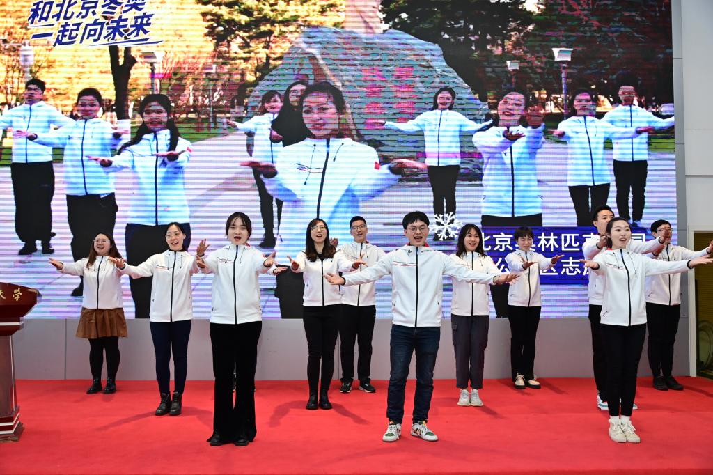 学生工作队伍中冬奥志愿者代表带来手势舞《一起向未来》,助力冰雪盛宴,充分彰显了我校学工队伍在冬奥志愿服务中的青春风采和圆满完成冬奥志愿服务任务的坚定决心。
