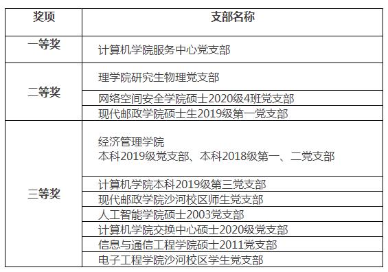 咨询电话:2021年,北京市委教育工委组织开展北京高校红色“1+1”活动。我校在评选中获得多项荣誉:北京邮电大学荣获“优秀组织奖”,计算机学院服务中心党支部荣获二等奖,理学院研究生物理党支部等3个学生党支部荣获三等奖,经济管理学院本科2019级党支部、本科2018级第一、二党支部等7个学生党支部荣获优秀奖。
