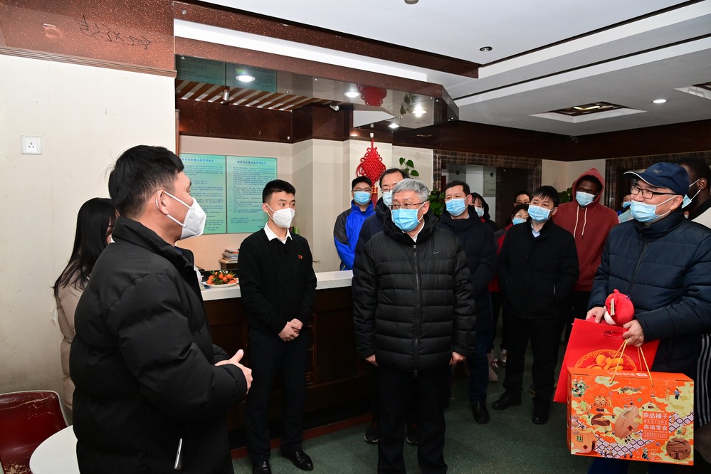 吴建伟一行先后前往校医院、信息化技术中心、校园安防指挥中心、食堂、接诉即办中心、学生公寓等处,慰问在校师生员工,代表学校为他们送去节日的问候和祝福,并对校园疫情防控、网络安全保障、留校师生生活保障等工作进行检查。
