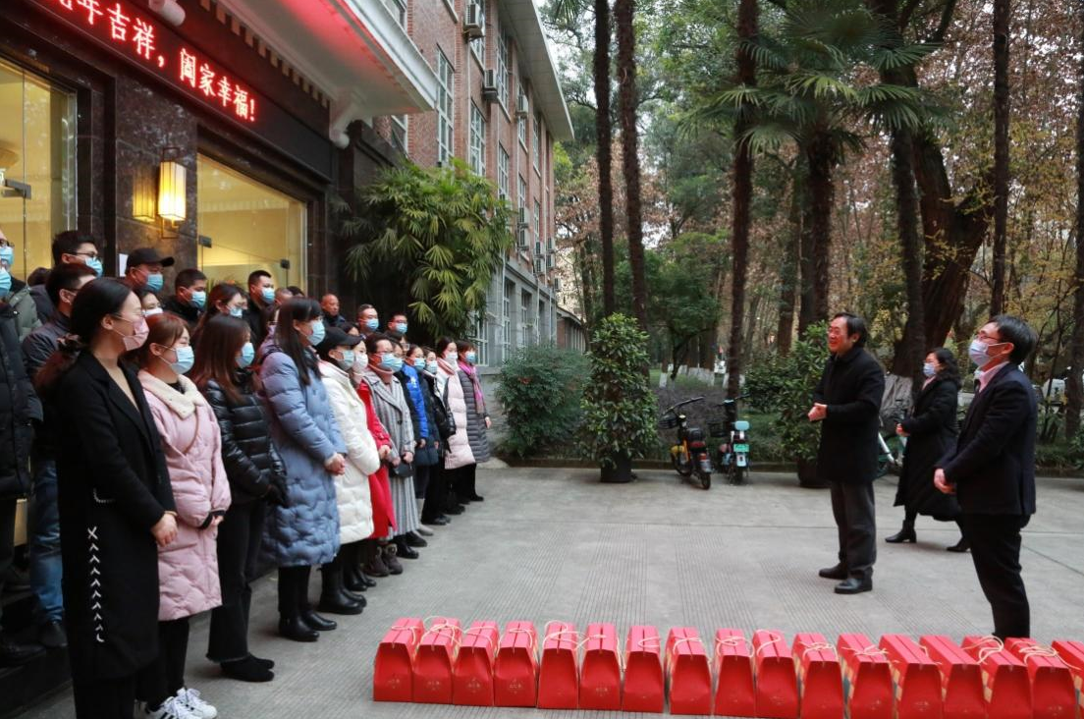 咨询电话:1月30日上午8点30分,农历大年二十八,在壬寅虎年新春佳节即将到来之际,校党委书记龚灏,校党委副书记、校长刘清友,校党委常委、副校长曾英在学校党办校办、学生处、校工会、人事处、保卫处、后勤服务集团、校医院等部门负责人陪同下看望慰问我校寒假在岗值班工作人员和留校学生,代表学校表达关心和慰问,并送上诚挚的新春祝福。