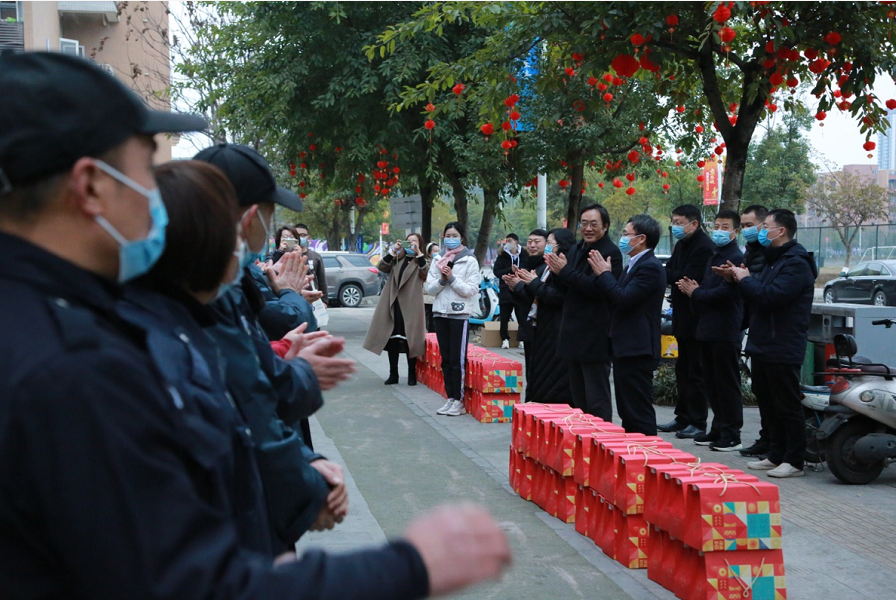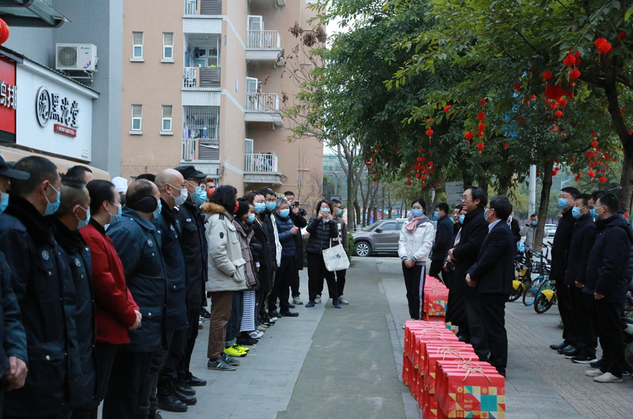 龚灏代表学校向全体留校学生、留学生及其家人以及所有提供后勤保障服务的工作人员拜年,并致以亲切的慰问和节日的祝福。他仔细询问同学们的留校学习生活情况,叮嘱及时问候家中父母,跟父母报平安,同时注意安全和个人防护,劳逸结合,希望同学们在校园度过一个难忘的春节。刘清友感谢后勤集团员工们一直以来的辛勤付出,并为师生送上新春祝福,祝愿老师们同学们过个愉快祥和的春节!