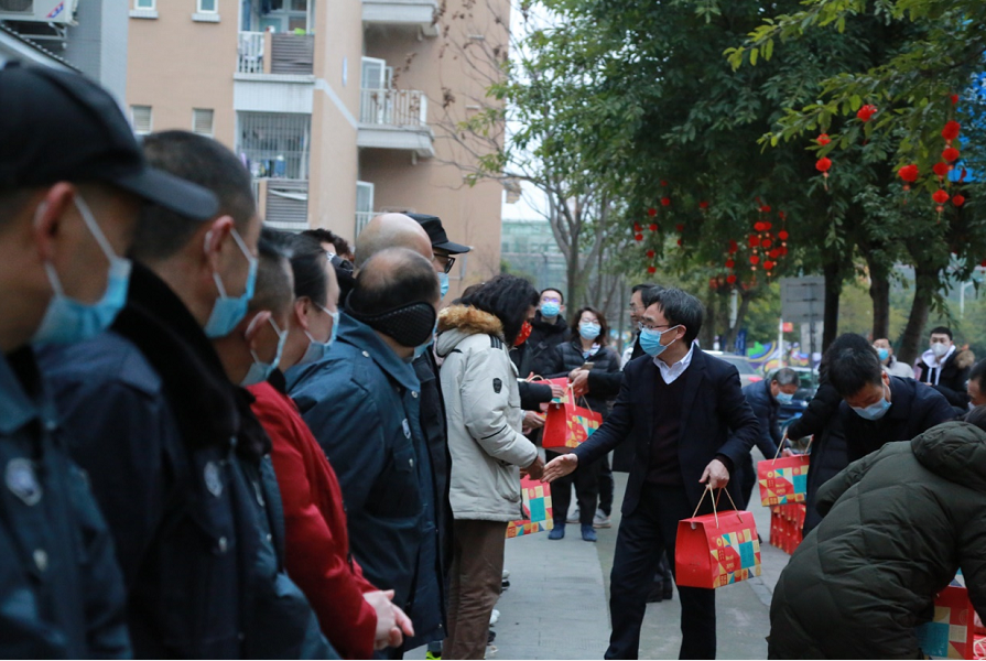 在校医院值班点,龚灏感谢一线工作的医务人员为守护全校师生健康所作的贡献,并致以节日的问候,祝他们新春愉快,阖家幸福。在校车队,校领导向他们在春节期间的辛苦工作表示慰问。在行政楼,校领导看望慰问了机关在岗值班人员,并与值班人员亲切交流,对大家为学校常态化疫情防控工作开展及校园平稳运行做出的努力表示感谢。在西大门值班岗亭,校领导看望慰问在岗保卫值班工作人员,感谢他们筑牢校园安全防线,向他们致以新春祝福,并一一发放节日慰问品。